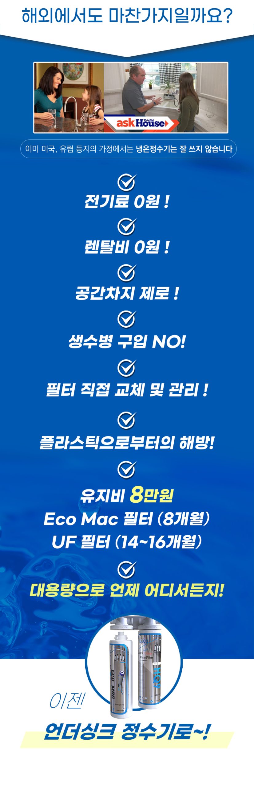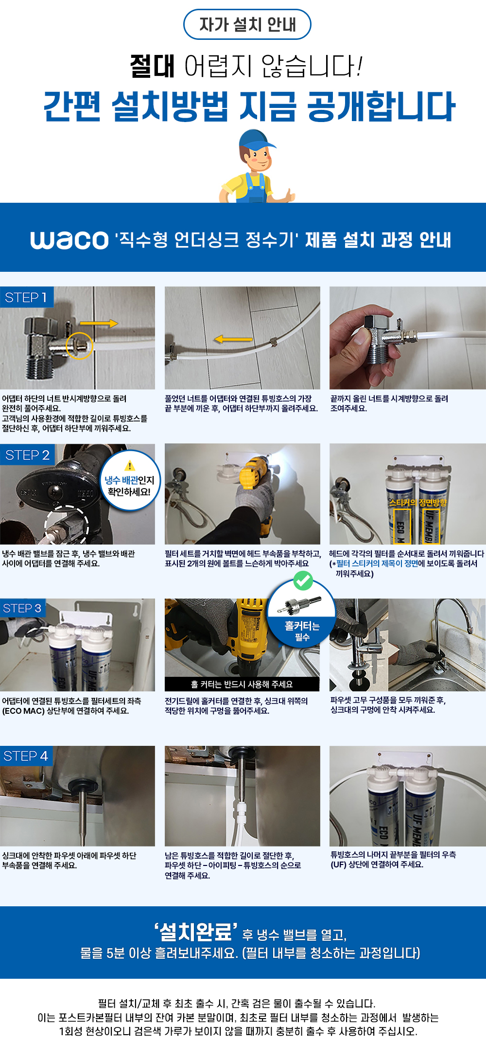 언더싱크 HQ9lena2026-01-19T14:10:54+09:00 ※ Q9 UF 타입, 직수 정수필터(언더싱크 정수필터)자가설치(DIY) 방법을 알려드립니다. *설치과정은 타사 직수 정수필터 (언더싱크 정수필터) 제품 설치과정과 동일합니다.